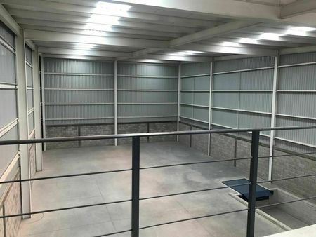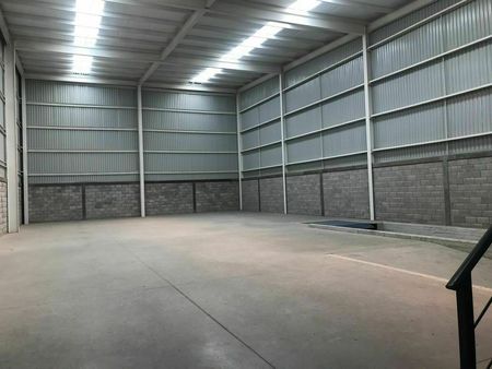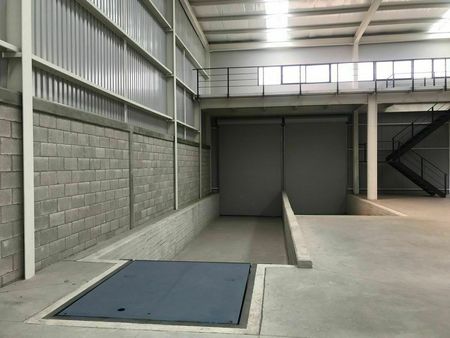 Las bodegas de 450m2 cuentan con rampa interior con niveladora y anden para descarga compensandose el espacio con 50mts de tapanco para oficinas.
